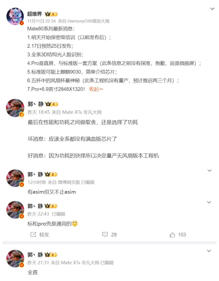 华为Mate80系列再次被确认: 全直屏+无风扇, 版本细节也更清晰了